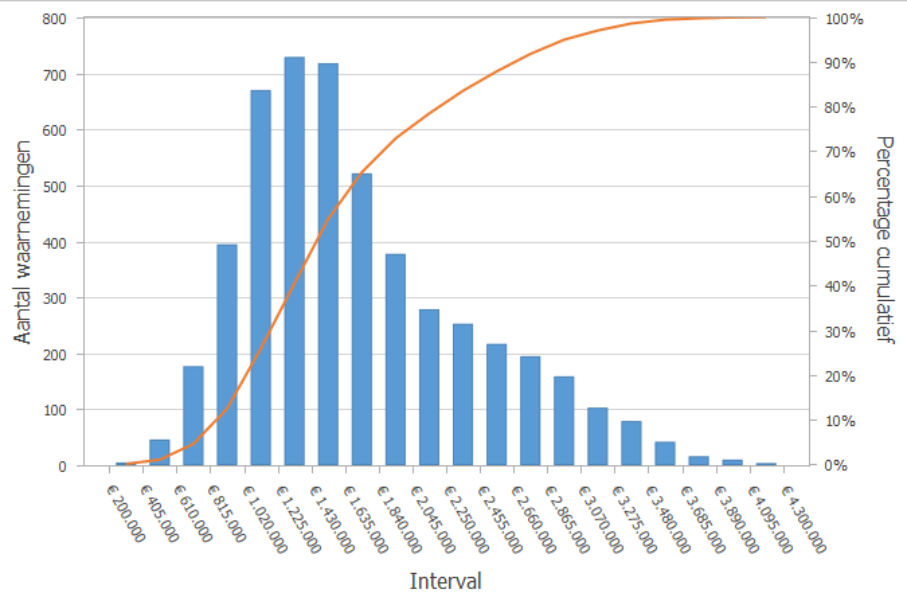 Uit de grafiek en de bijbehorende tabel volgt dat 90% zeker is dat alle risico’s kunnen worden afgedekt met een bedrag van € 2,66 miljoen (benodigde weerstandscapaciteit).